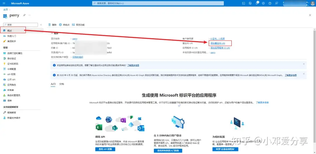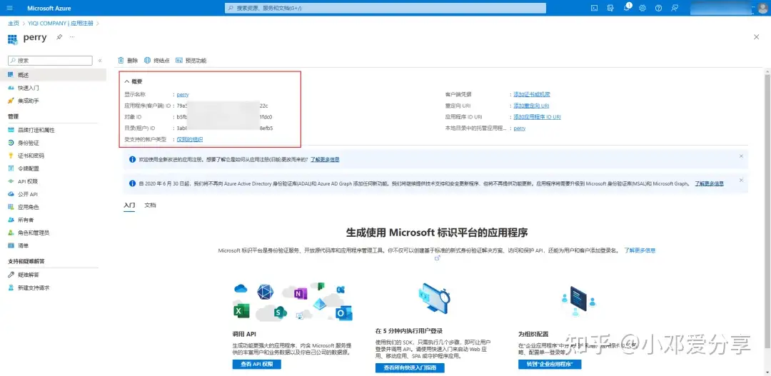 2.这样的话会得到3个信息,应用客户端ID、对象ID及租户ID(建议复制到文本,等下要用到),如图所示: