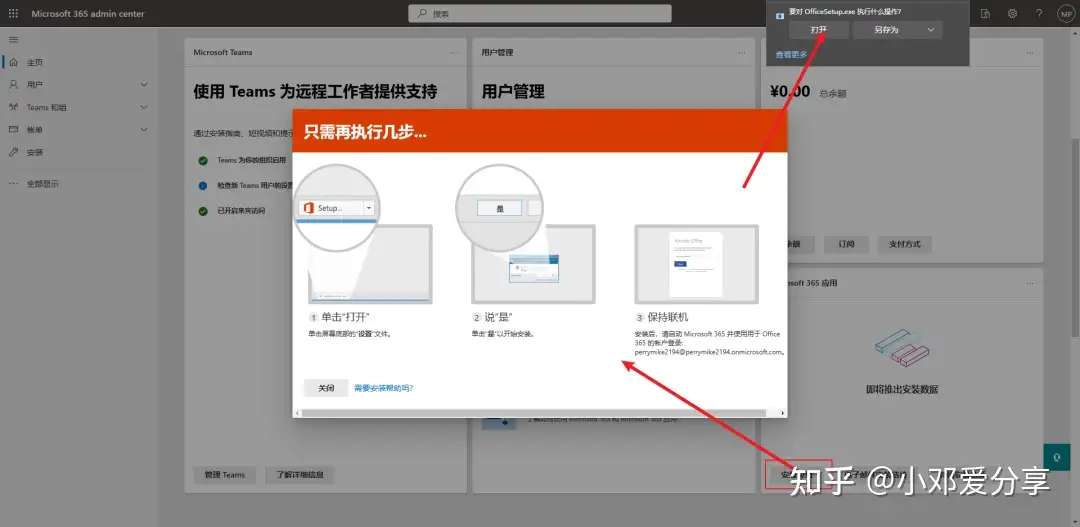 7.如果要安装Microsoft 365全家桶的话,找到安装应用把安装程序下载下来就可以啦(具体安装过程省略),如图所示: