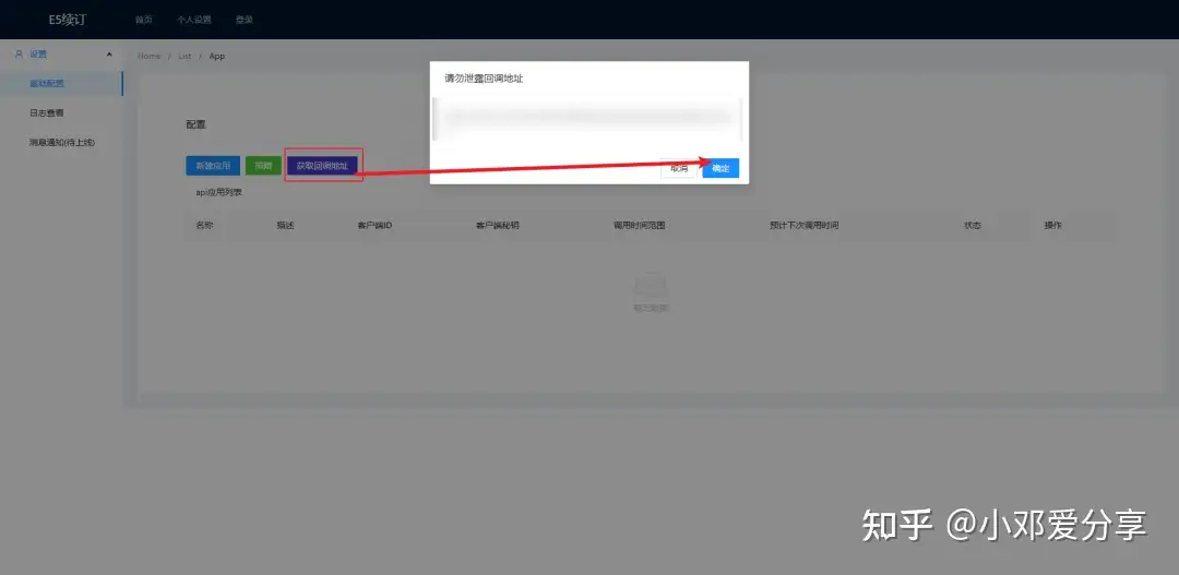 10.登录成功后,点击返回个人中心,进入后点击左上角的获取回调地址(回调地址不要泄露了),复制出来,如图所示: