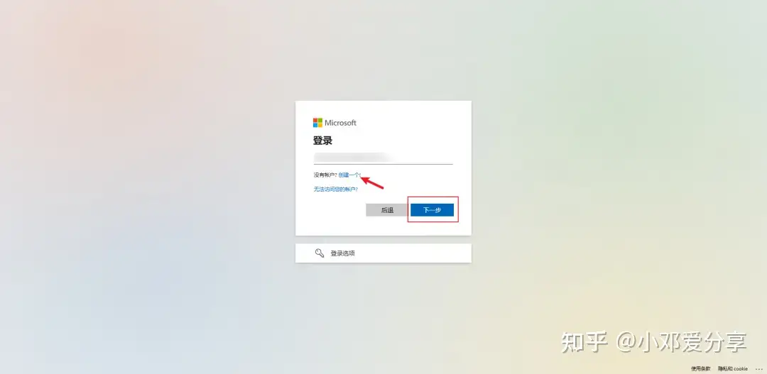 3.输入微软账号,如果没有创建一个就行啦,如图所示: