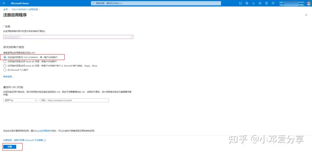 1.点击左上方新注册,进入注册应用程序,填写名称及勾选第一个选项,点击注册,如图所示: